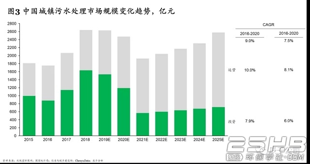 城镇污水运营将保持8.1%的复合增速到2025年达1860亿元,行业集中度将进一步上升