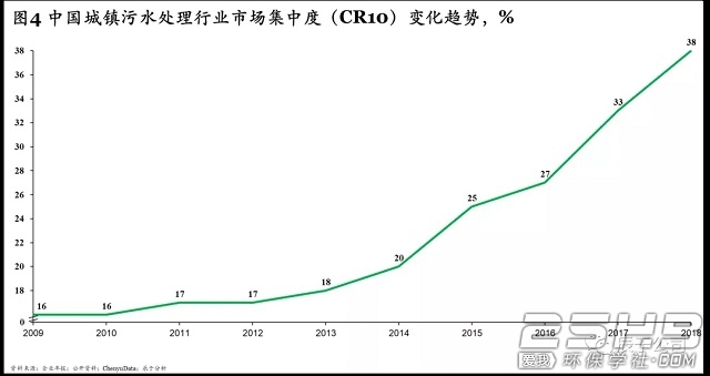 机遇一:城镇污水运营将保持8.1%的复合增速到2025年达1860亿元,行业集中度将进一步上升。