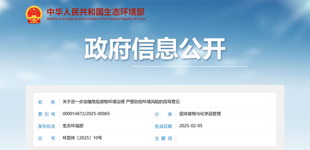 1、关于进一步加强危险废物环境治理 严密防控环境风险的指导意见,生态环境部,2025-02-12