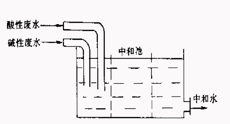 实例应用:电镀厂的酸性污水和印染厂的碱性污水相互混合,达到中和目的。处理构筑物:中和池。