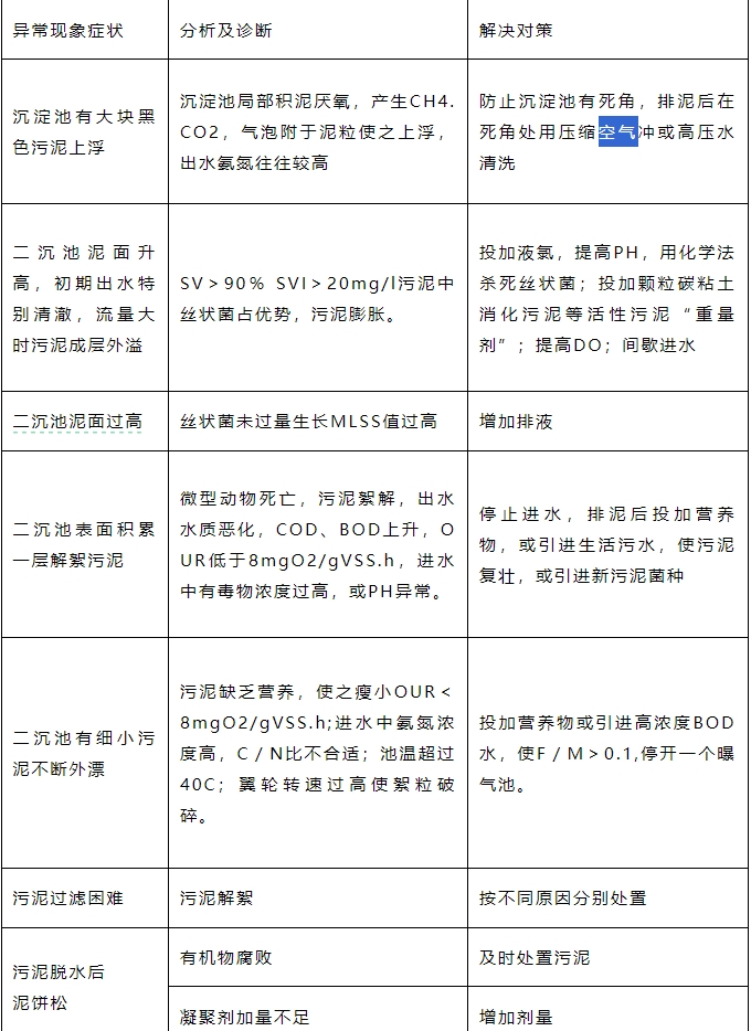 附: 二沉池污泥异常对策表