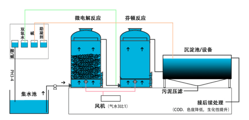 案例数据:某染料厂采用铁碳微电解预处理后,COD从8000mg/L降至2500mg/L,色度从500倍降至10倍以下,后续生化处理负荷降低60%。